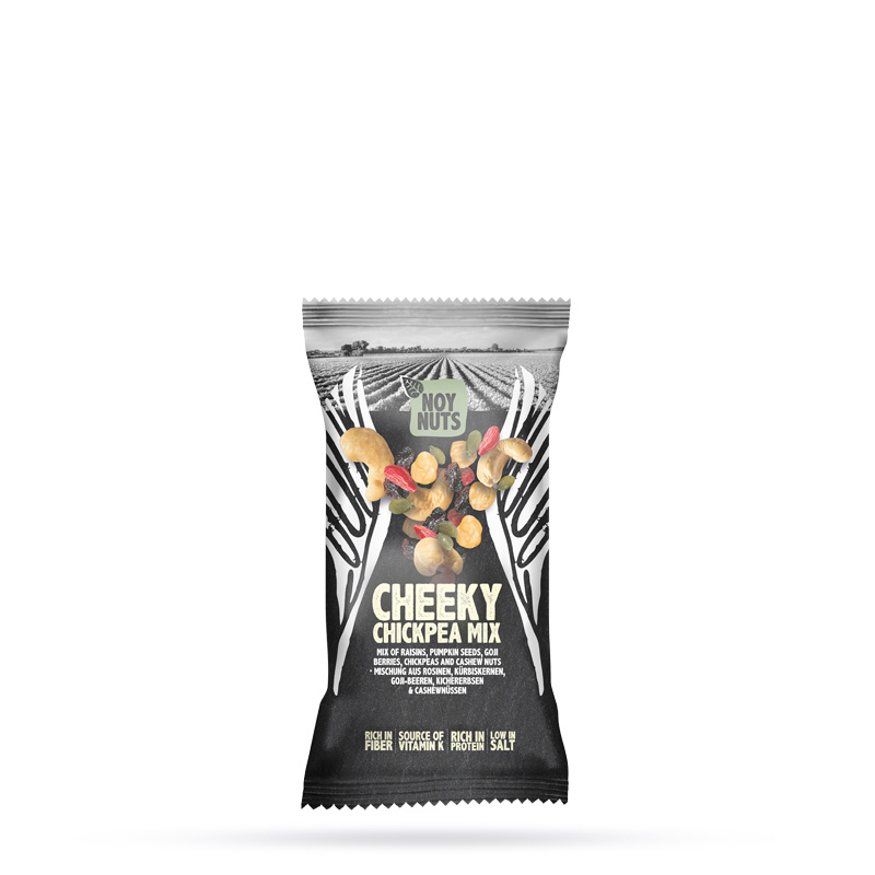 Der Cheeky Chickpea Mix ist reichhaltig gefüllt mit gesalzenen Kichererbsen, Cashewnüssen, Rosinen, Kürbiskernen und Goji-Beeren. Von dieser Mischung kannst du getrost eine Handvoll mehr nehmen!