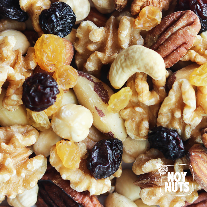 Nussmischung aus naturbelassenen Nüssen, darunter Mandeln, Walnüsse, Haselnüsse, Paranüsse, Pekannüsse und schwarze Rosinen. Mandeln sind reich an pflanzlichem Eiweiß, Ballaststoffen, Kalzium und Eisen. Außerdem enthalten sie einen relativ hohen Gehalt an Vitamin E und Magnesium. Walnüsse stecken voller guter Nährstoffe wie Omega-3-Fette, Magnesium, Eisen, Kupfer, Phosphor und Eiweiß. Haselnüsse enthalten viele Vitamine des B-Komplexes, worunter die Vitamine B1, B2, B3, B5, B6 und B11. Sie enthalten außerdem die Vitamine C, E und K und wirken als Antioxidans in deinem Körper.